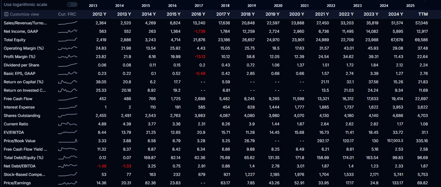 AVGO is a textbook example of a quality compounder – stable growth, excellent margins, strong cash flow, dividend aristocrat in the making. Currently not cheap, but for a company of this caliber, this is the usual premium. For me, the company is currently slightly overvalued. I noticed it before, did brief analyses, but precisely because of this premium price, it didn’t make it to my watchlist. Now I’ve added it to my watchlist, which means I’ll check it more frequently. I won’t buy it currently. I would buy it on a potential downward correction. At what price that would be, I can’t say yet. But I’ll let you know when the time to buy approaches.