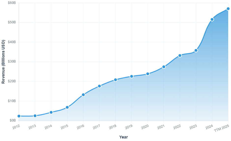 - Growth from 2.4B (2012) to 69.5B (TTM)