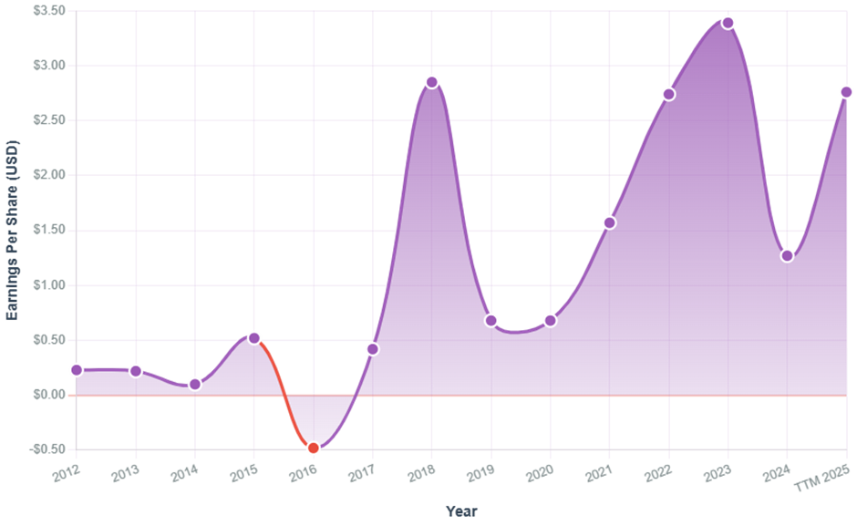 - From 23% (2012), to over 30–40% (2022–2024), TTM 22.6%