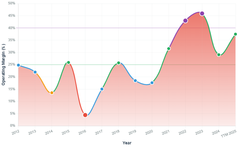 - ROE between 20–38%, recent years also above 30% (top in industry)